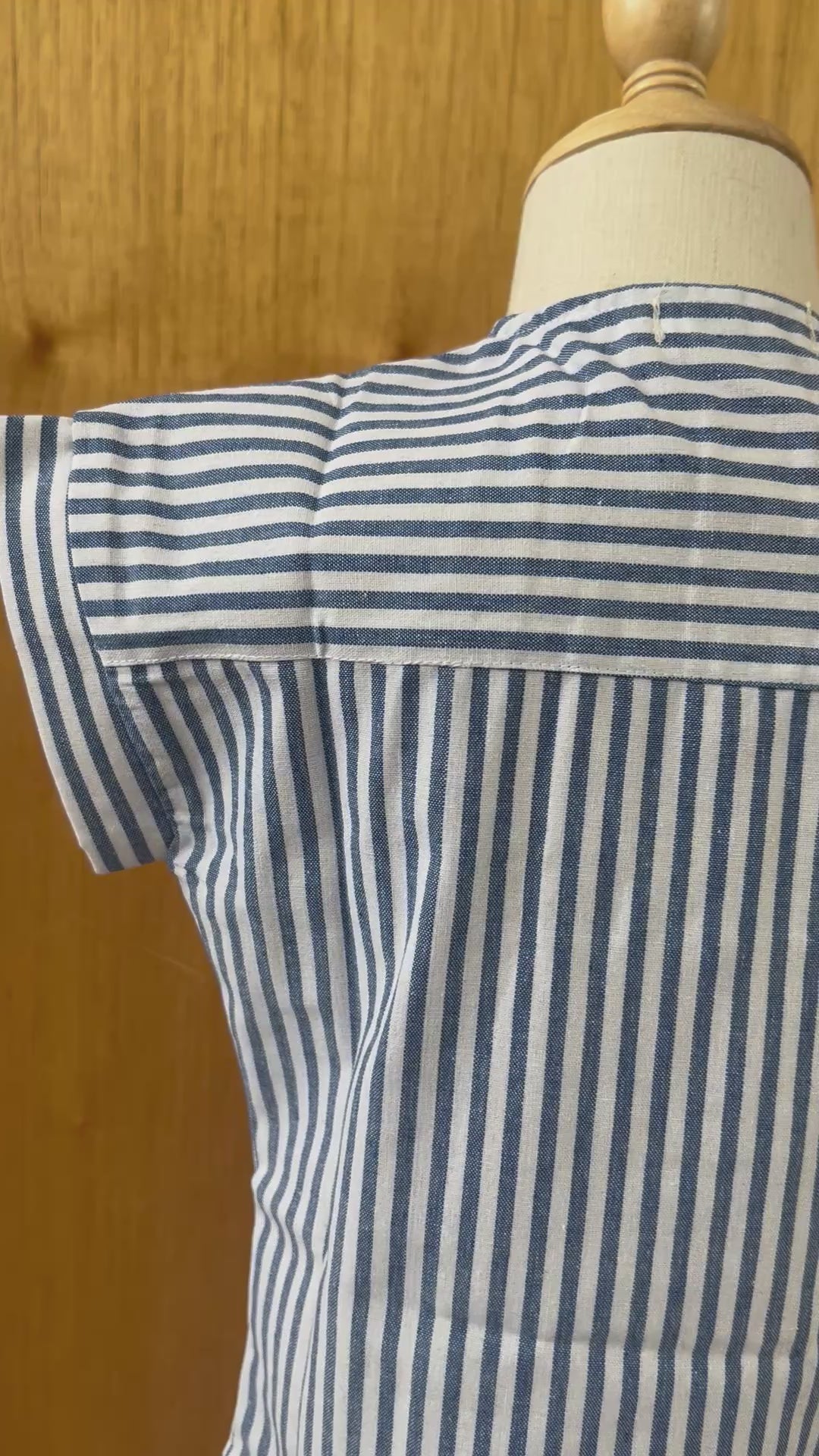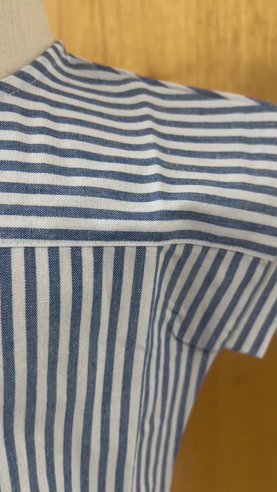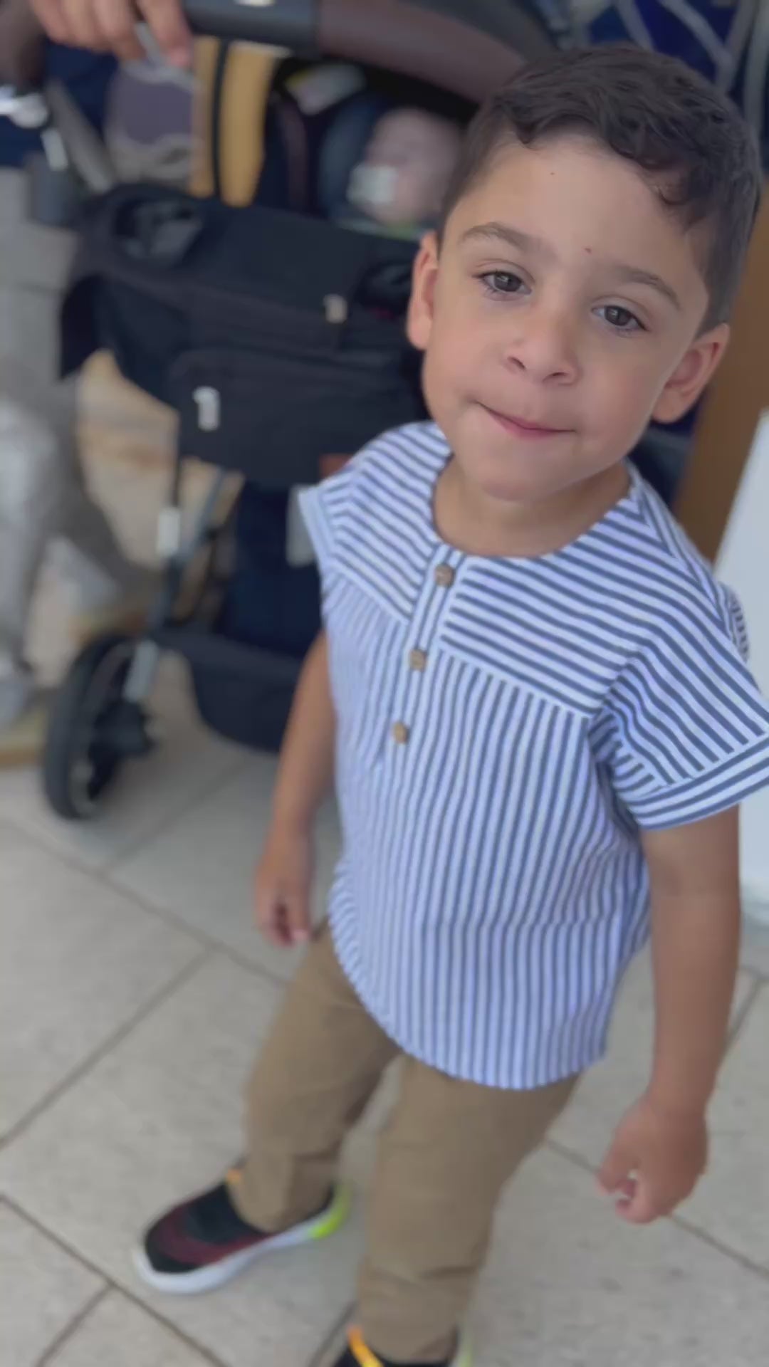 Inspirada en los días soleados junto al mar, esta camisa de hilo con rayas azules es una opción ligera, elegante y muy versátil para tu peque. Con botones tipo madera y corte cómodo, es perfecta para climas cálidos, días de paseo o eventos especiales.