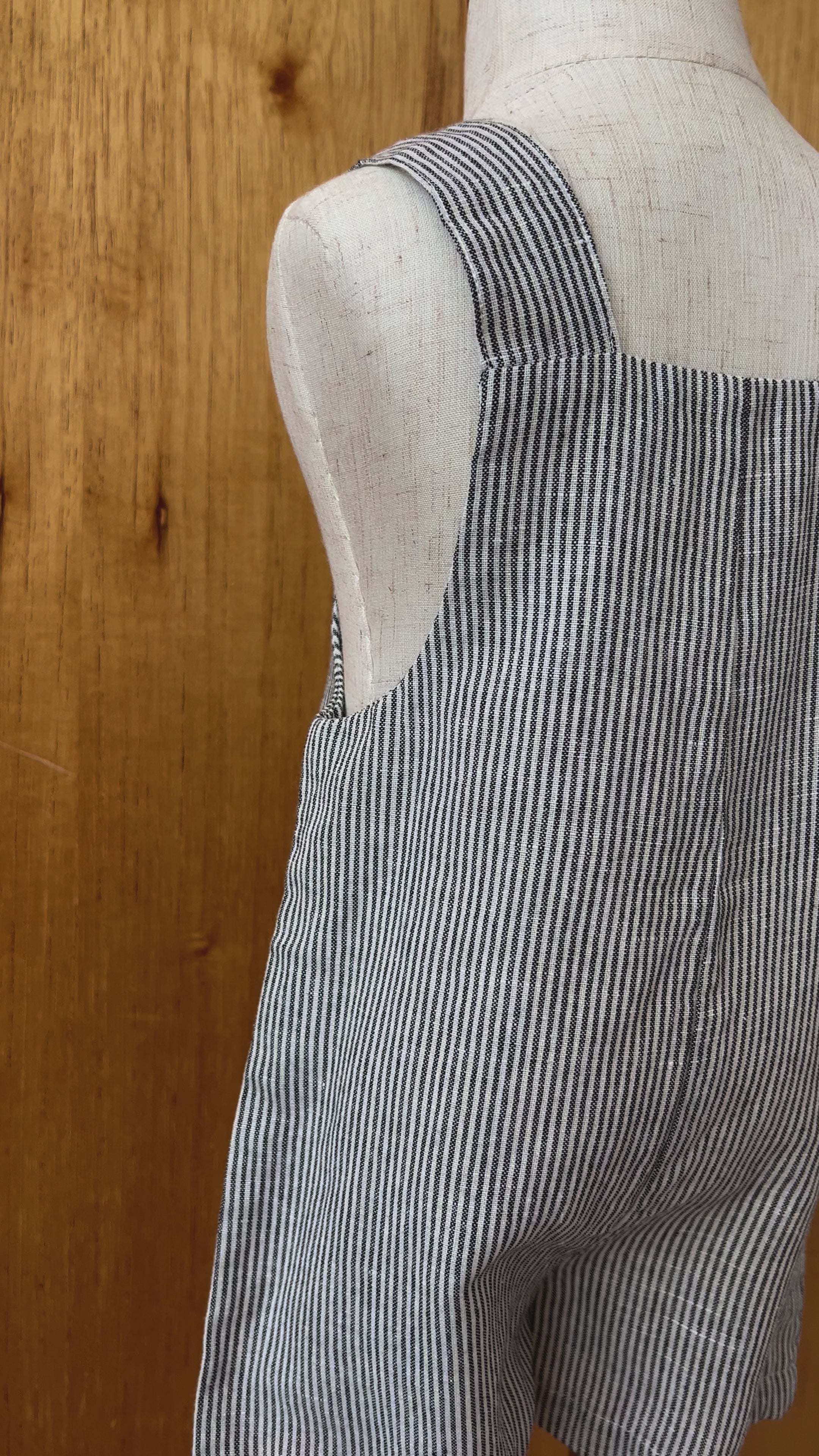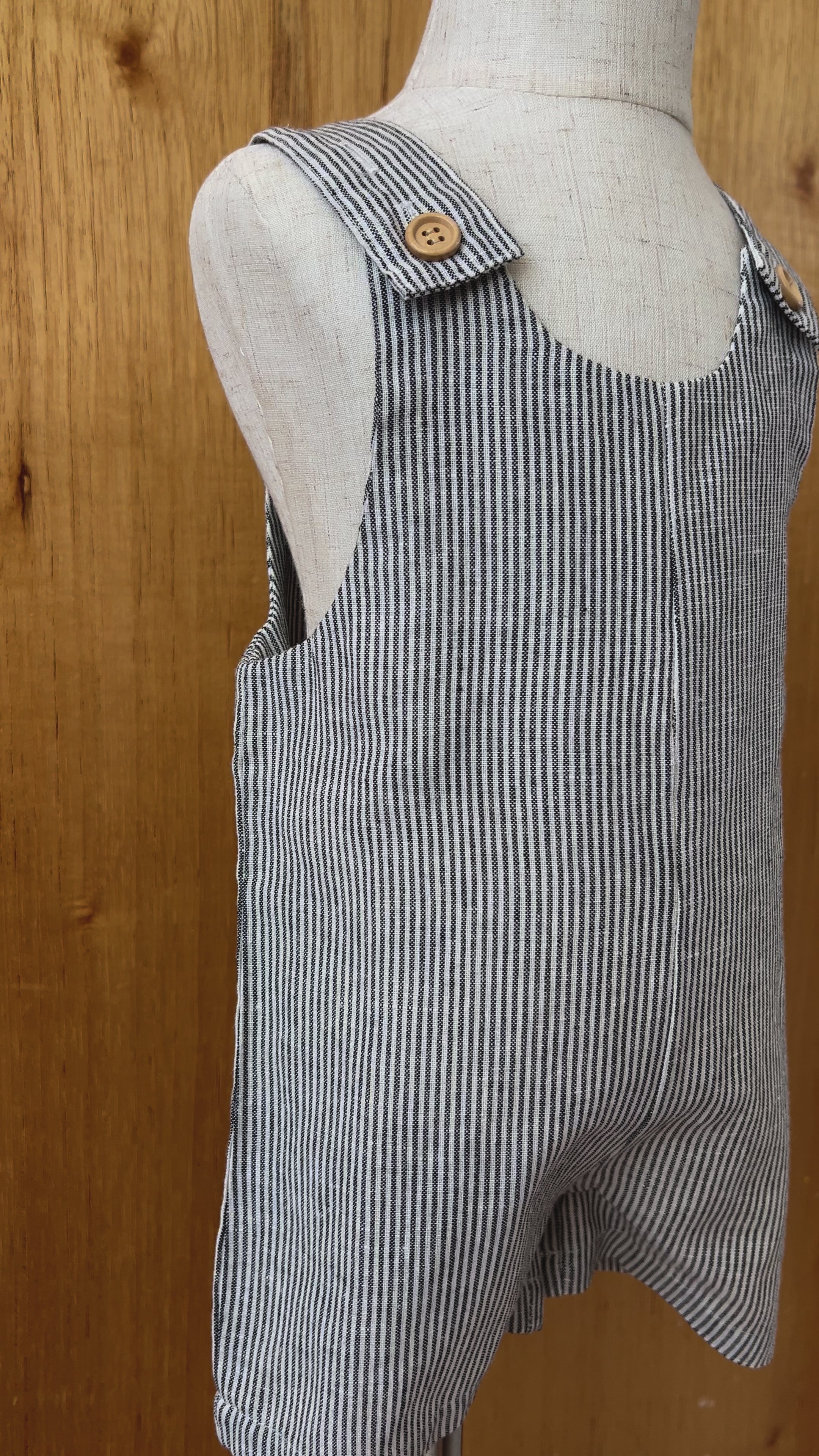 Mono de lino hecho a mano , sin mangas y con botones en color crema.